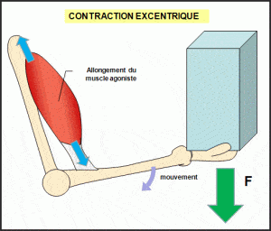Encore appelée contraction négative, ce deuxième type de contraction isotonique est en quelque sorte opposée à la contraction concentrique. Au cours d’une contraction excentrique, les extrémités du muscle s’éloignent. Cette contraction se produit dans une situation où l’effort nécessite que le muscle soit dans sa forme la plus longue. Une contraction est dite excentrique lorsque vous appliquez une force sur un objet tout en ayant le muscle responsable d’effort tendu.