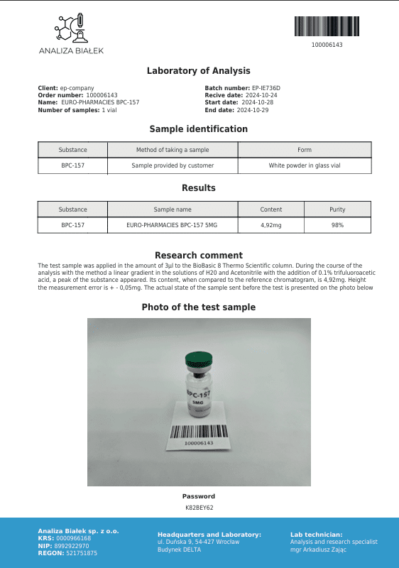 Il a été constaté que les effets de l’injection durent dans l’estomac pendant une période pouvant aller jusqu’à 24 heures après l’injection. La posologie va varier pour chaque personne, en fonction de leurs objectifs lors de l’utilisation des injections de BPC 157. Il doit être administré une à trois fois par jour. L’injection doit être faite à jeun (y compris les liquides). Et, il doit être administré à un minimum de trois heures d’intervalle (si vous faites plus d’une injection par jour). Il est préférable de suivre la structure du petit-déjeuner, du déjeuner et du dîner si vous vous injectez plusieurs fois par jour. Prendre la première chose le matin vous permettra de ressentir les effets tôt dans la journée. Gamme de dosage de 200 mcg – 1000 mcg selon le protocole et le traitement.