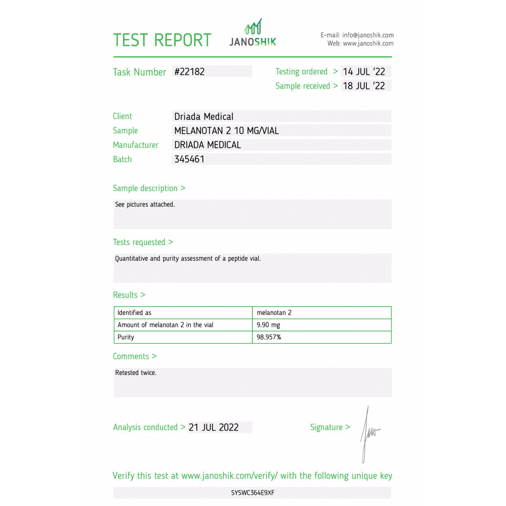 Peptide Melanotan II Driada Medical
