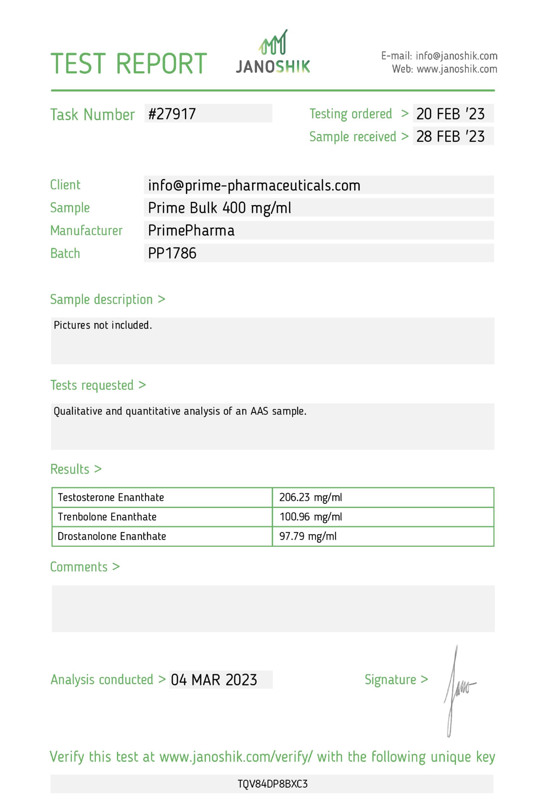 Bulk Prime 400 combine trois puissants composés anabolisants en une seule formule, offrant une approche synergique de la construction musculaire et de l’amélioration des performances :