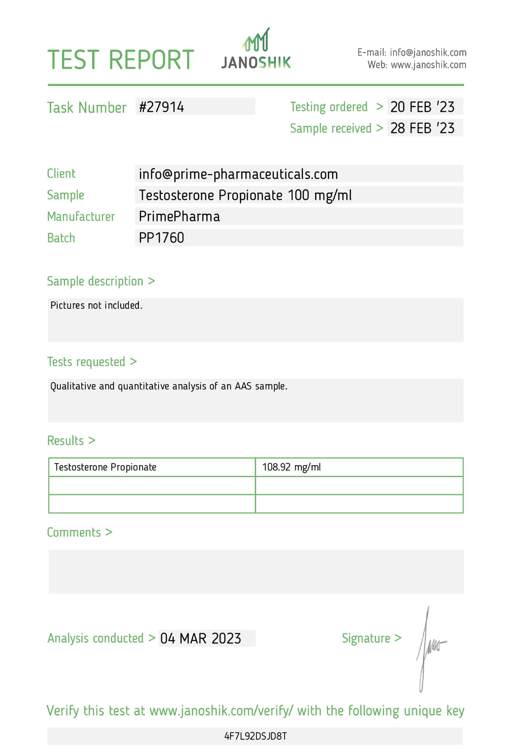 La Testostérone propionate est une forme injectable synthétique de la testostérone masculine androgène primaire. L’ester de propionate ajouté ralentira la vitesse à laquelle la testostérone est libérée du site d’injection, celle-ci ne durera que quelques jours. Par conséquent, le propionate de testostérone comparée à d’autres esters tels que le cypionate ou l’énanthate est beaucoup plus rapide, et nécessite un calendrier de dosage beaucoup plus fréquent. La testostérone propionate est une forme plus ancienne de testostérone injectable, rendue obsolète par les esters plus lents et plus confortables qui ont été développés après elle.